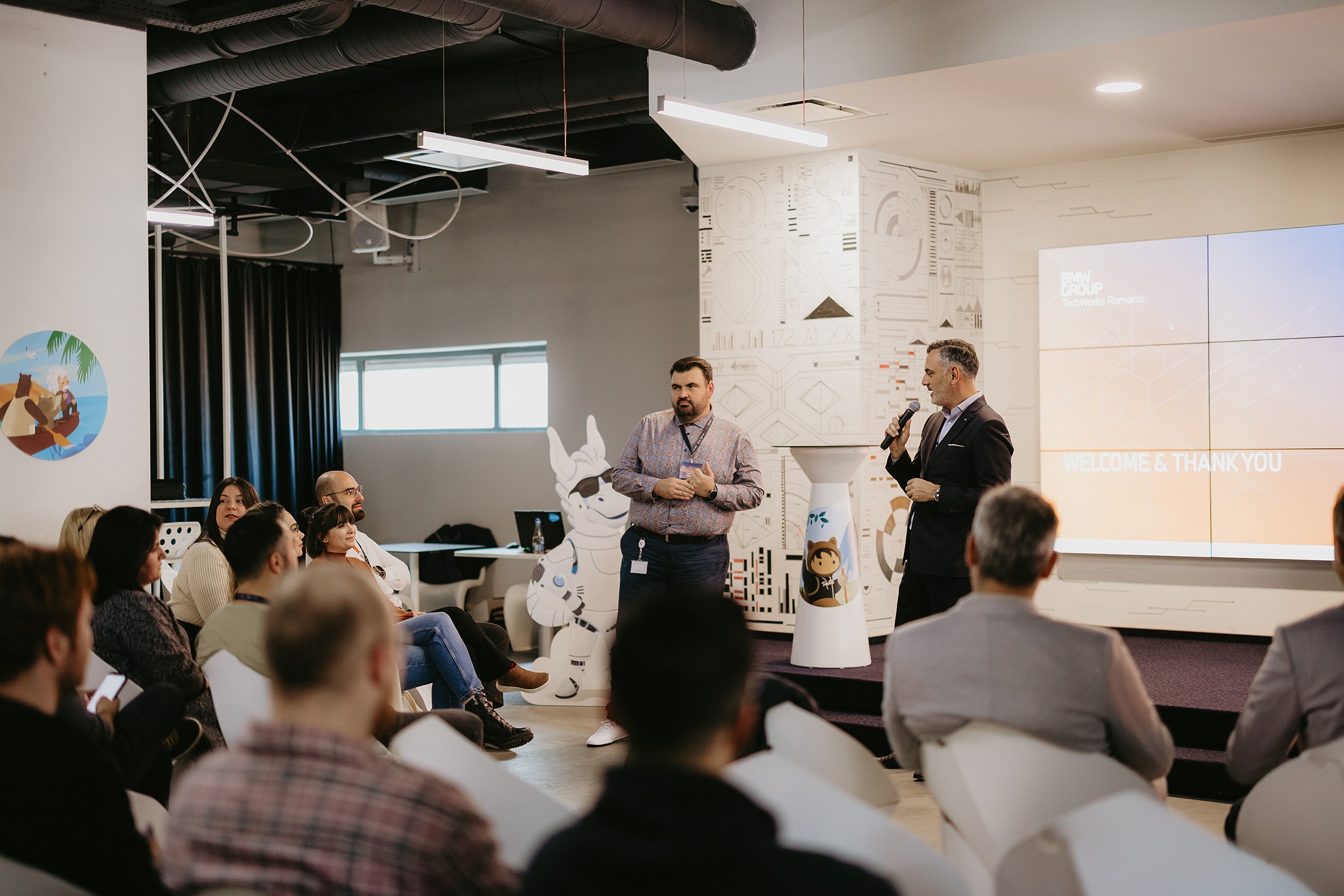 Neben der hochmodernen Technologie hatten die Teilnehmer die Gelegenheit zu erfahren, wie die BMW Group zusammen mit Salesforce und MuleSoft Innovationen zur Digitalisierung ihrer Kunden- und Vertriebsprozesse vorantreibt. Wir bei BMW TechWorks Romania sind stolz darauf, die digitale Transformation durch den Einsatz von Lösungen der nächsten Generation voranzutreiben.